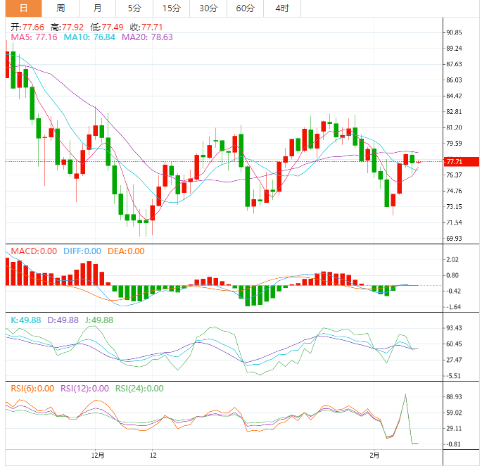 也就是说,要想明显跌破77.30美元的支撑位,需要200小时移动平均线(HMA)支撑位76.96美元的证实,才能说服能源空头。