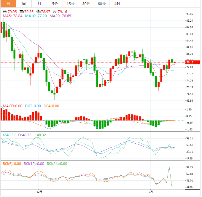 周二亚洲时段,美油交投于79.20美元/桶附近;油价周一小幅下跌,周一有一批阿塞拜疆原油从土耳其杰伊汉港起航,这是2月6日该地区发生破坏性地震以来首批船货运出,在一定程度上缓解了供应担忧,拜登政府计划从战略石油储备中再出售2600万桶原油也限制油价涨幅。