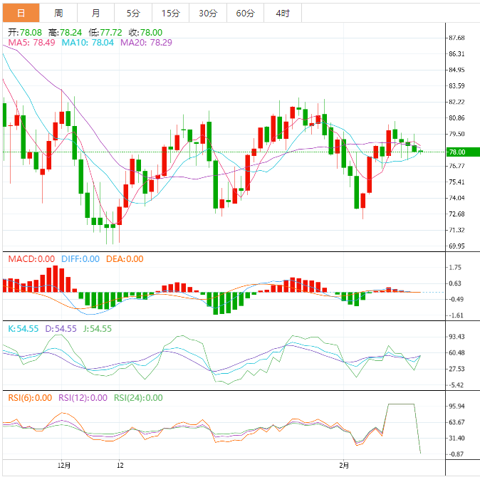 周五亚洲时段,美油交投于77.84美元/桶附近;油价周四在窄幅震荡后小幅收低,因为市场在美国经济信号好坏参半、中国需求复苏的前景与美国原油库存增加之间进行权衡。