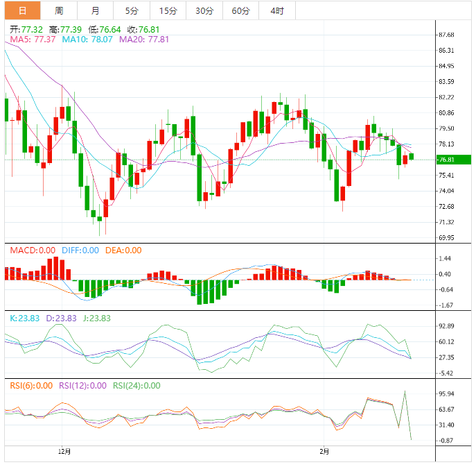 周二盘中,美油交投于77.25美元/桶附近;油价周一上涨超过1%,受中国需求的乐观情绪、主要产油国持续减产以及俄罗斯控制供应计划的影响,且拜登突然现身基辅,在俄乌战争爆发周年之际力挺乌克兰,加剧地缘不确定性风险;由于周一美国市场逢总统日假期,成交低迷。