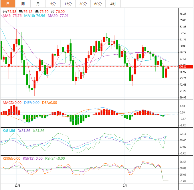 另一方面,楔形的顶部线起到了即时支撑线的作用,截至发稿时接近75.80美元。