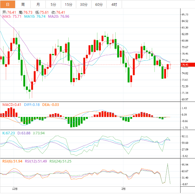 技术指标大多表明,上限更有可能守住,而不是突破。100移动平均线低于200移动平均线,这表明阻力最小的路径是下行,而200移动平均线与三角形顶部在每桶78美元的位置对齐,增加了其作为上限的强度。