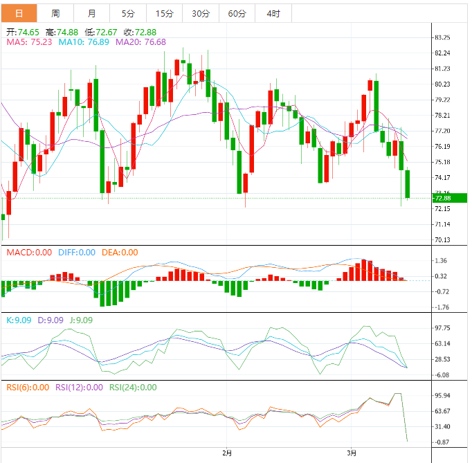 该三角关系介于每桶70美元至82美元之间,因此由此产生的下跌可能会持续12美元,使原油价格跌破每桶76美元,跌至每桶64美元。不过,技术指标看起来喜忧参半。