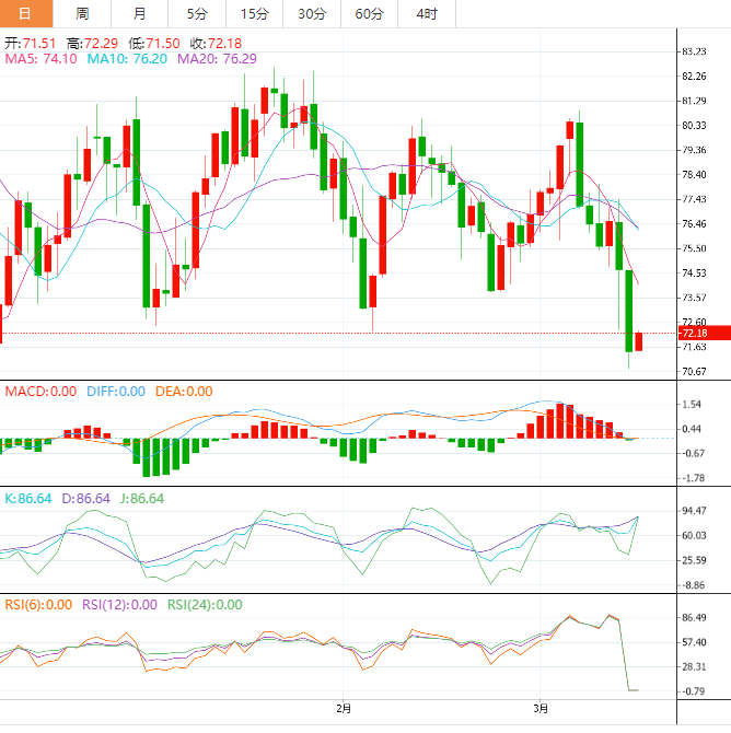 周三亚洲时段,美油交投于71.80美元/桶附近;油价周二下跌超4%,触及三个月最低,此前美国的通胀报告和最近的硅谷银行倒闭事件引发了对新的金融危机的担忧,这可能会减少未来的石油需求,且OPEC月报显示全球石油市场二季度或出现供应小幅过剩;早间公布的数据显示,美国上周原油库存增加,也限制油价上涨。