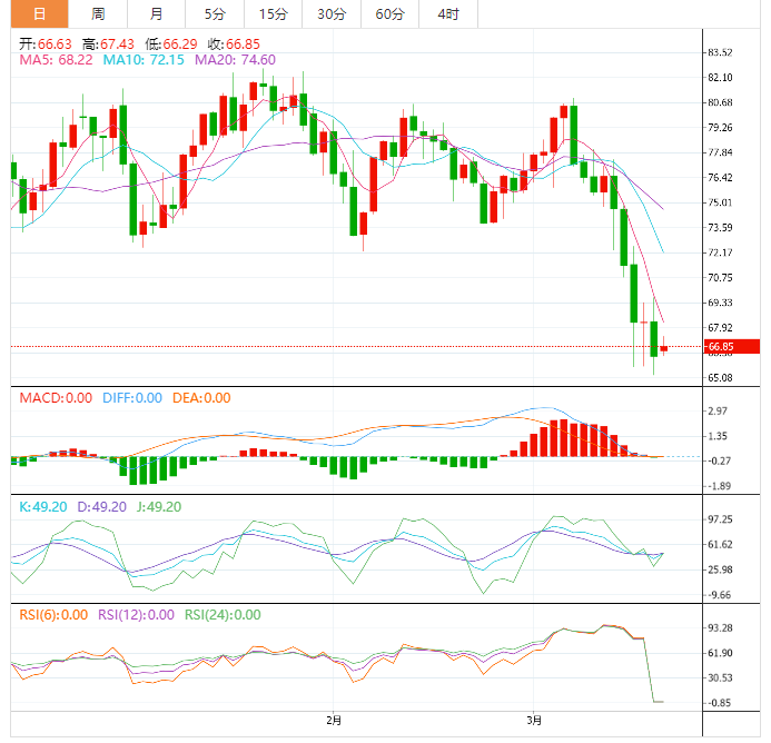 需求复苏和对美联储或在本周暂停加息的预期支撑油价,但担忧银行业动荡蔓延,美股下挫拖累油价,市场在聚焦本周美联储决议的同时,对银行业风险保持谨慎;日内短线维持震荡偏空观点,油价或再次测试下探65美元/桶关口。
