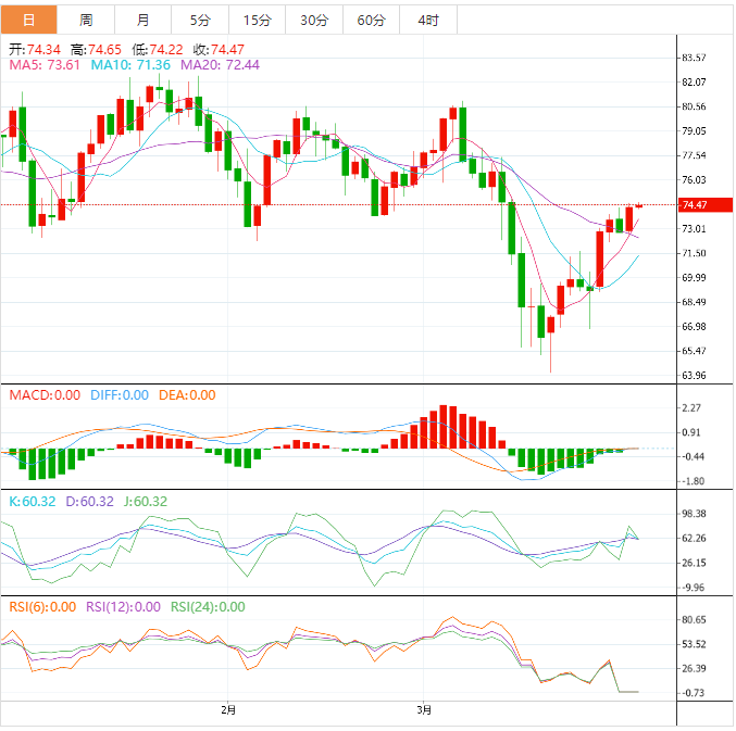 周五亚洲时段,美油交投于74.44美元/桶附近;油价周四上涨超2%,因美国原油库存下降和伊拉克库尔德斯坦地区暂停出口带来支撑,盖过了俄罗斯供应削减幅度小于预期的压力,伊朗支持国际法院关于美国冻结伊朗企业资产不合法的裁决,或加剧美伊关系紧张,增加伊朗原油重返市场阻碍,也提振了油价。