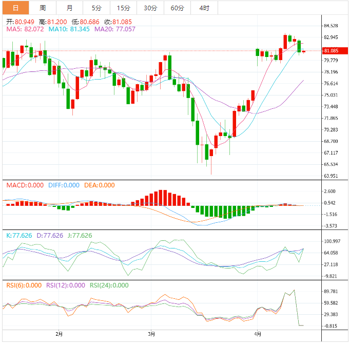 但值得注意的是,看跌的MACD信号和两周的水平阻力位在81.60-80美元附近,可能会挑战原油的进一步上行空间。在此之后,最近的多日高点在上周,大约83.40美元将成为焦点。
