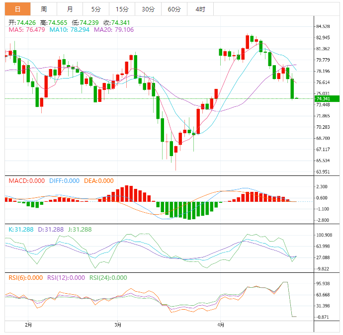 周四亚洲时段,美原油交投于74.34美元/桶附近;油价周三大跌了近4%,延续了前一交易日的大幅跌势,尽管此前报告显示美国原油库存下降幅度超过预期,但对世界最大经济体的衰退担忧与日俱增。