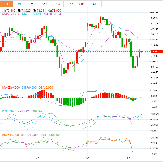 经济衰退担忧有所缓解提振油价上行,加拿大阿尔伯塔省遭遇野火迫使能源生产商关闭部分石油产能,为多头助力,日本下调新冠定位,市场情绪乐观,诸多利多因素下,油价短线有望剑指75美元/桶,日内交易关注EIA月度短期能源展望报告。