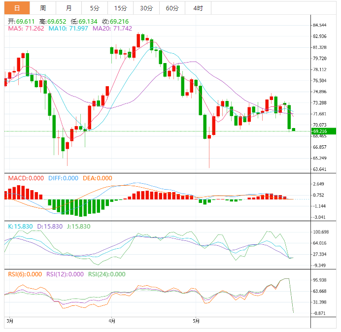 因此,在WTI空头接近5月3日在64.30美元附近创下的月度和年度低点之前,67.30-20美元的支撑区域受到关注。
