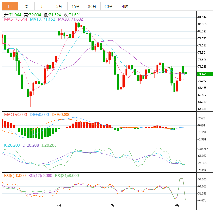 周二亚洲时段,美油报71.55美元/桶附近,油价周一盘中一度触及75.06美元/桶的一周高点,受益于沙特承诺从7月起进一步减产100万桶/日,以应对压制市场的宏观经济不利因素。但因美能源部长称关注油价并与产油国和消费国合作确保降油价,令油价回吐涨幅。