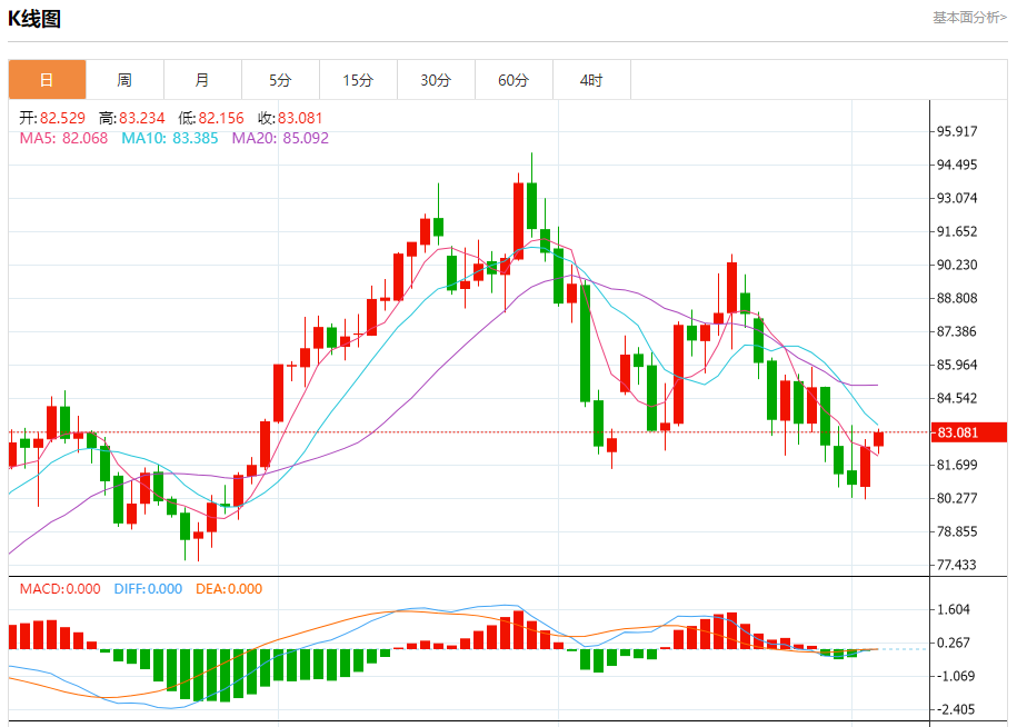 周五盘中,WTI原油报83.435,涨幅1.17%。