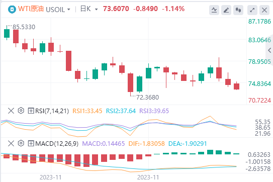 12月4日,周一欧市盘前,原油交投于73.60美元附近。欧佩克+组织决议以及全球燃料需求增长前景不确定,WTI油价继续下跌。