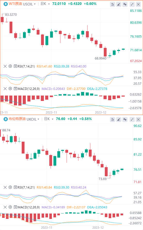 在美国11月消费者价格指数(CPI)数据和美联储(Fed)利率决定之前,西德克萨斯中质原油(WTI)价格试图连续第四个交易日上涨。截至目前,WTI原油报价72.01美元,Brent原油报价76.6美元。