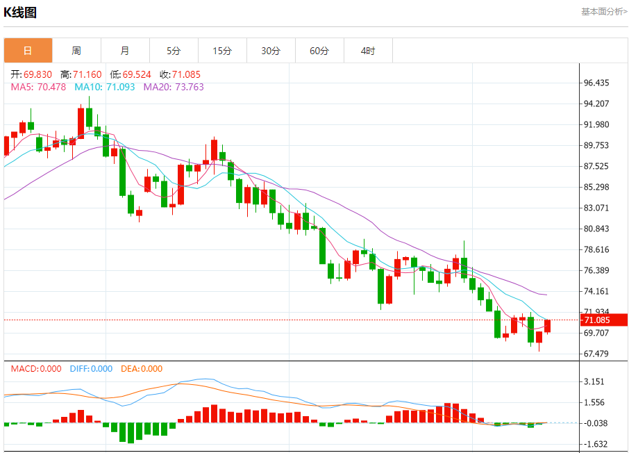 周四盘中,WTI原油报71.129,涨幅1.84%。