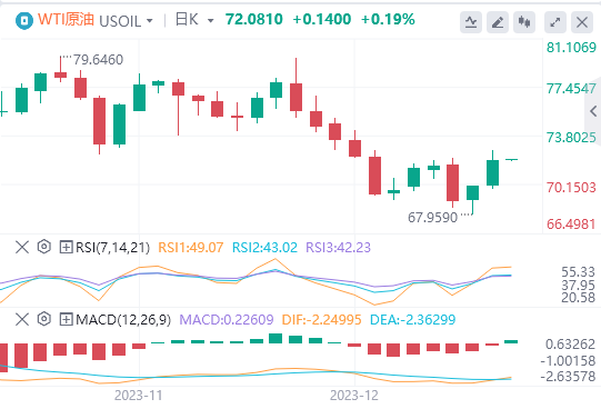 随着美联储调整其利率预期点图,将2024年的几次降息包括在内,更广泛的市场情绪高涨,将WTI拉回到70.00美元的区间之上,但自9月下旬原油市场从略低于94.00美元的高点下跌以来,看跌压力一直在给原油市场带来。