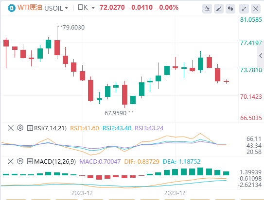 原油目前的日价格为72.027美元,低于前一日收盘价74.11美元。就移动平均线而言,该资产的交易价格低于200天移动平均线76.50美元和50天移动平均值76.97美元。这表明了看跌趋势,因为当前价格低于长期和短期平均水平。