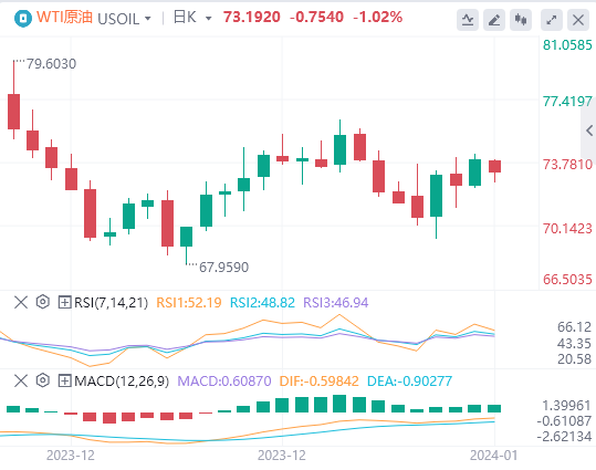 欧佩克12月的产量略有增加,每天7万桶,总计每天2788万桶。这一增长可能导致供应过剩,从而强化了市场的悲观情绪。与此同时,美国石油钻探数据显示,钻井平台数量有所增加,这表明未来供应扩张的可能性,这可能会进一步给油价带来下行压力。