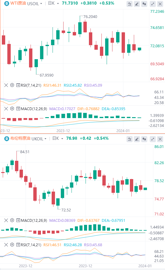 周四亚市盘中,原油(WTI)价格收复最近的失地,在上涨至71.50美元附近。也门胡塞批评联合国关于红海航行的决议后,由于担心潜在的供应中断,原油价格正在上涨。截至目前,WTI原油报价93.695美元,Brent原油报价102.28美元。