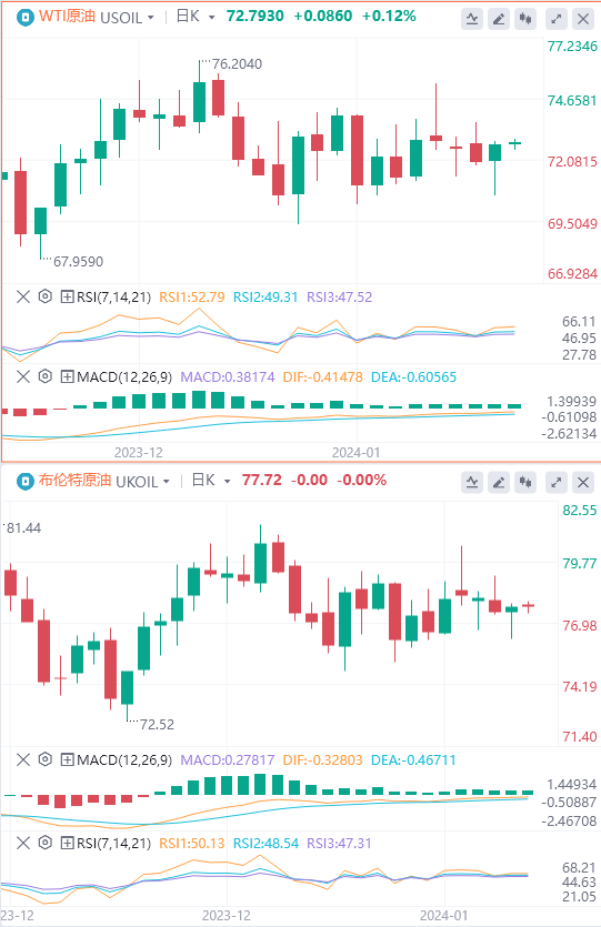 由于市场继续质疑美联储今年的降息路径,尤其是在昨天美国12月零售销售数据高于预期之后。对美联储行动看法的转变足以抵消红海的担忧。昨天又有一艘商船遇袭,使本周迄今遇袭商船总数达到三艘。随着越来越多的船只避开红海,这显然会扰乱贸易流动。不过,就目前而言,石油价格走势表明,市场假定局势不会升级。