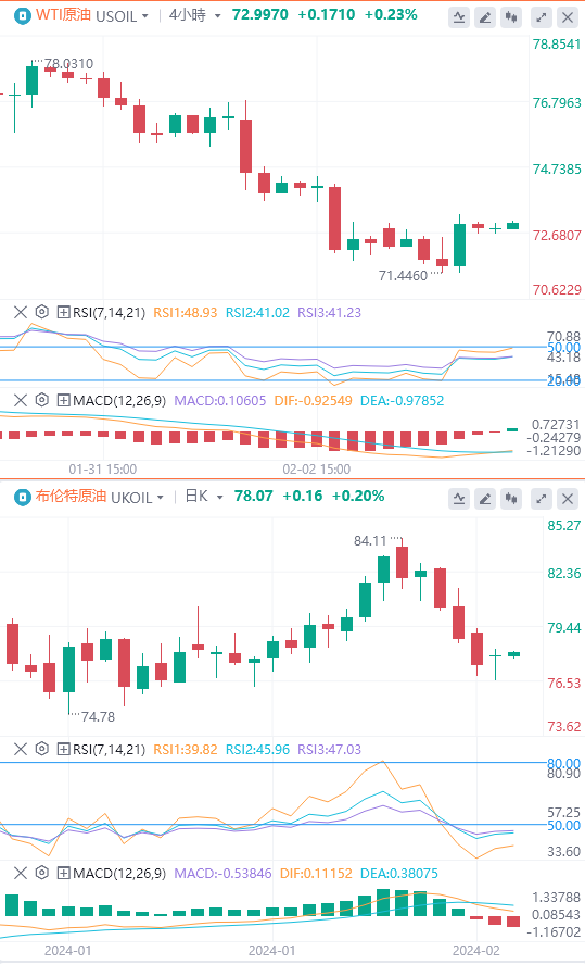 WTI价格因美元小幅下跌而小幅走高。WTI价格的下行空间可能受到中东紧张局势和俄罗斯持续入侵乌克兰可能抑制全球供应的担忧。截至目前,WTI原油报价72.99美元,Brent原油报价78.07美元。
