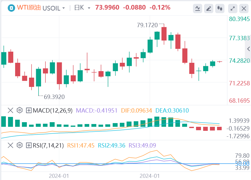 WTI美国原油周三正努力收复74.00美元的关口,但随着上周近期跌至71.50美元后,桶价继续回升,仍被支撑在高位。价格走势仍然限制在200小时简单移动平均线(SMA)的南侧,靠近75.00美元。WTI原油在200日均线附近略低于78.00美元关口的近期拒绝后继续下跌,美国原油继续进入中期拥堵区间的中间,自11月跌破200日均线以来,该区间阻碍了价格势头。