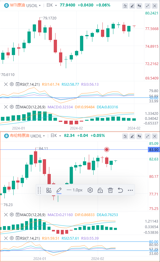如果油价突破83.69美元,将建立86美元的看涨目标,而当合约突破81.68美元时, 将出现79.74-80.71美元的看跌目标区域。
