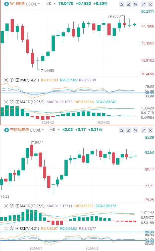 美国原油库存上升开始打压能源风险偏好,原油看涨势头停止。美国PCE价格指数符合预期,但未能重新激发市场对美联储(Fed)降息的预期。截至目前,WTI原油报价78.04美元,Brent原油报价82.02美元。
