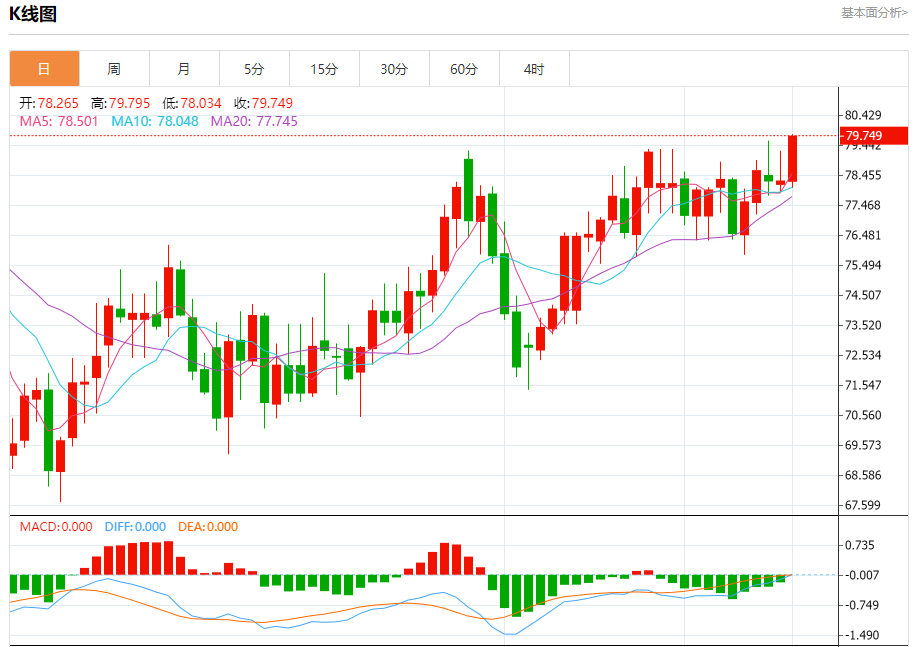 技术点评:在78.60之上,为多头信号,向上的目标位为79.60。