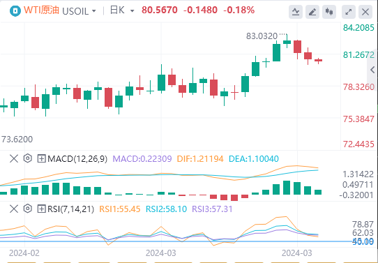 原油位于81.21美元的枢轴点下方,面临81.87美元、82.93美元和83.87美元的直接阻力位。相反,支撑位确定在79.39美元、78.46美元和77.35美元。50天指数移动平均线(EMA)为80.72美元,略高于当前价格,表明市场紧张。然而,200日均线78.54美元表明潜在强势。整体市场情绪在81.21美元以下看跌,但超过这一水平可能表明前景转向更看涨的前景。