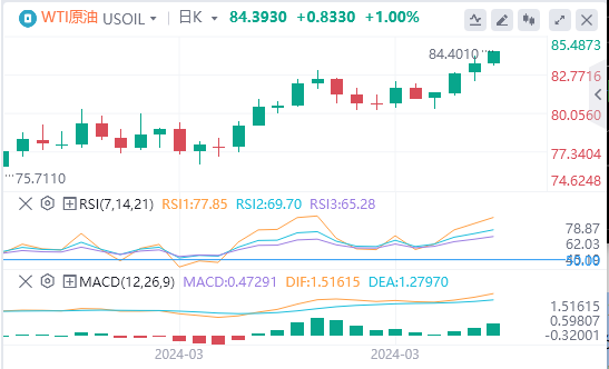 枢轴点为83.54美元,是趋势方向的重要标志。阻力位在84.53美元、85.26美元和86.10美元,而支撑位在82.89美元、82.14美元和81.45美元。50日均线81.99美元和200日均线79.62美元提供基础支撑,暗示看涨趋势。