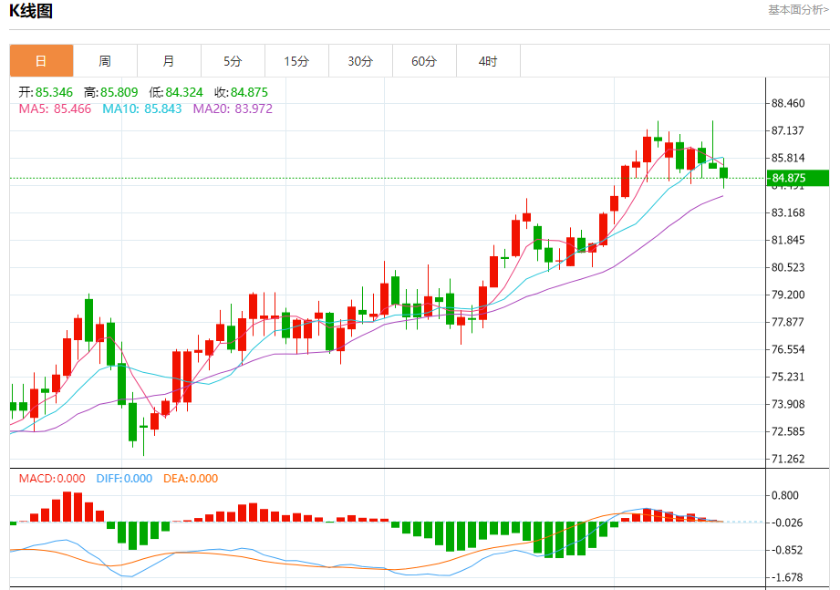 技术点评:只要85.70阻力位不被突破,向下跌破84.20位置的风险很高。
