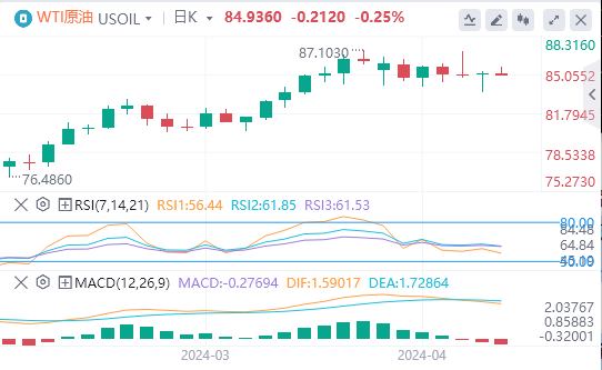 原油交易价格高于其枢轴点89.87美元,表明有可能进一步上涨。值得关注的阻力位在90.92美元,其次是91.83美元和92.89美元。克服这些障碍可能预示着看涨趋势的延续。