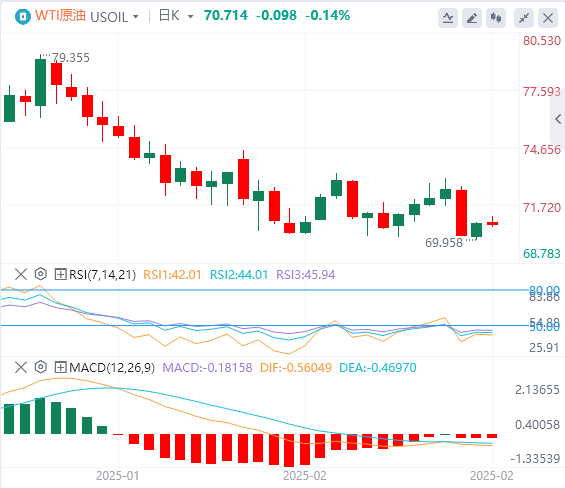 油价位于50EMA的下方71.45美元,远低于200EMA的72.34美元,表明短期看跌和更广泛的下跌趋势。直接阻力位在71.69美元,突破之上可能会打开通往73.16美元的道路。