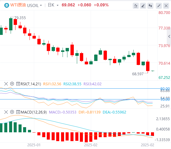 如果价格仍低于69.46美元的枢轴点,下一个目标是68.40美元的直接支撑位,如果抛售加剧,将进一步下跌至67.37美元。