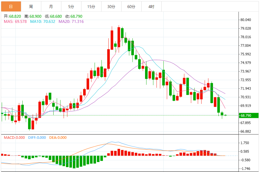 2月27日,截止发稿,美原油价格交投于68.79美元/桶附近,涨幅为0.25%。