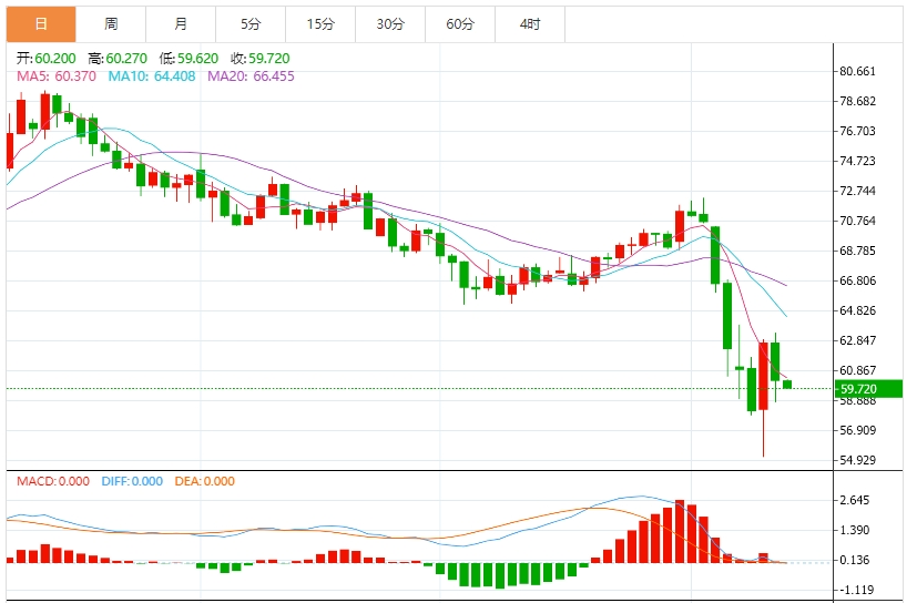 原油从日线图级别看,中期走势跌破区间下沿,油价触及60附近。均线系统拐头发散向下,中期客观趋势方向向下。由于关税引发的下行,关注其连续性,进一步确定中期下行将跌向55甚至50位置。原油短线(1H)走势受消息面刺激强劲反弹向上,油价重回62附近。油价上穿均线系统,短线客观趋势方向进入转换期,多头动能表现强劲,预计日内原油将顺势这波多头动能继续向上,上涨幅度相比前一日较弱一些。