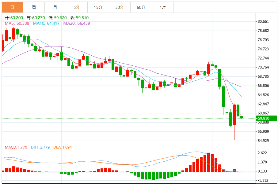 综合来看,原油今日操作思路上建议以回踩低多为主,反弹高空为辅,上方短期关注62.0-63.0一线阻力,下方短期关注58.0-57.0一线支撑。