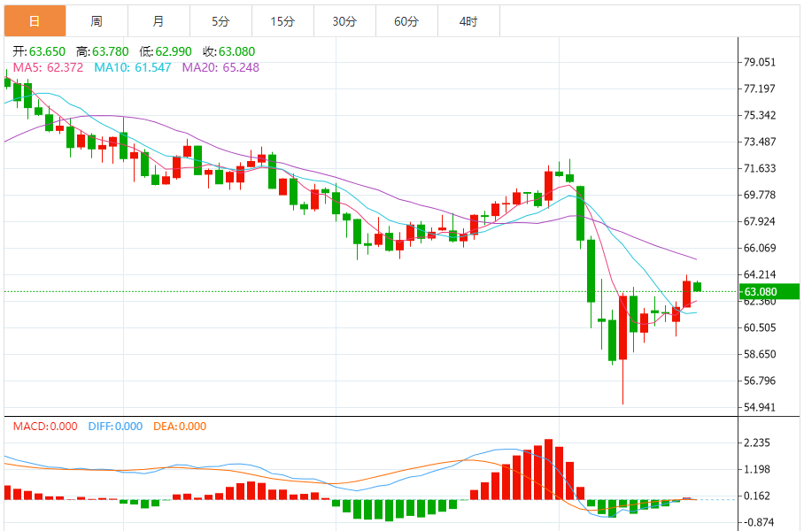 周一(4月21日),美原油价格交投于62.97美元/桶附近,跌幅为1.62%。由于上周五为“耶稣受难日”假期,交易将在周四提前结算,因此本轮反弹或标志着连续两周下跌后首次周线转正。两个基准油价周三均上涨2%,创下4月3日以来的最高收盘价。