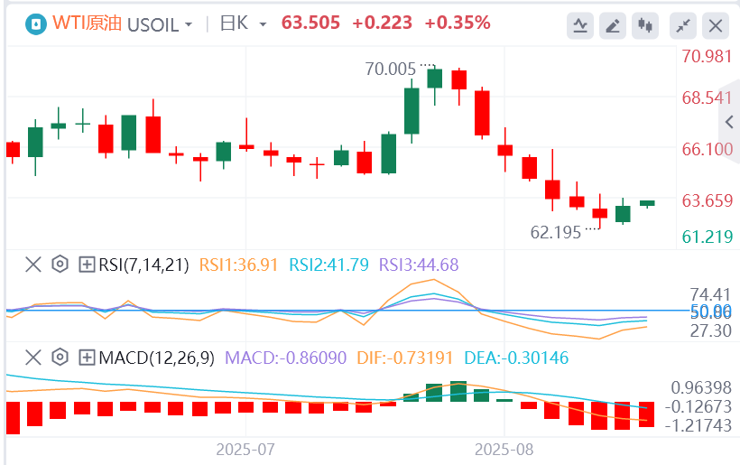 由于俄罗斯无视美国结束与乌克兰战争的最后期限,WTI收复了一些失地。截至目前,WTI原油报价63.50美元,Brent原油报价66.63美元。