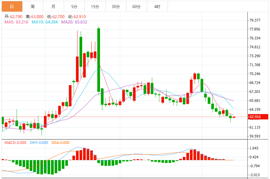 油价周四小幅反弹,收复前一交易日部分跌幅。亚盘时段,布伦特原油期货上涨28美分,或0.43%,报每桶65.91美元;美国WTI原油期货上涨23美分,或0.37%,至每桶62.89美元。
