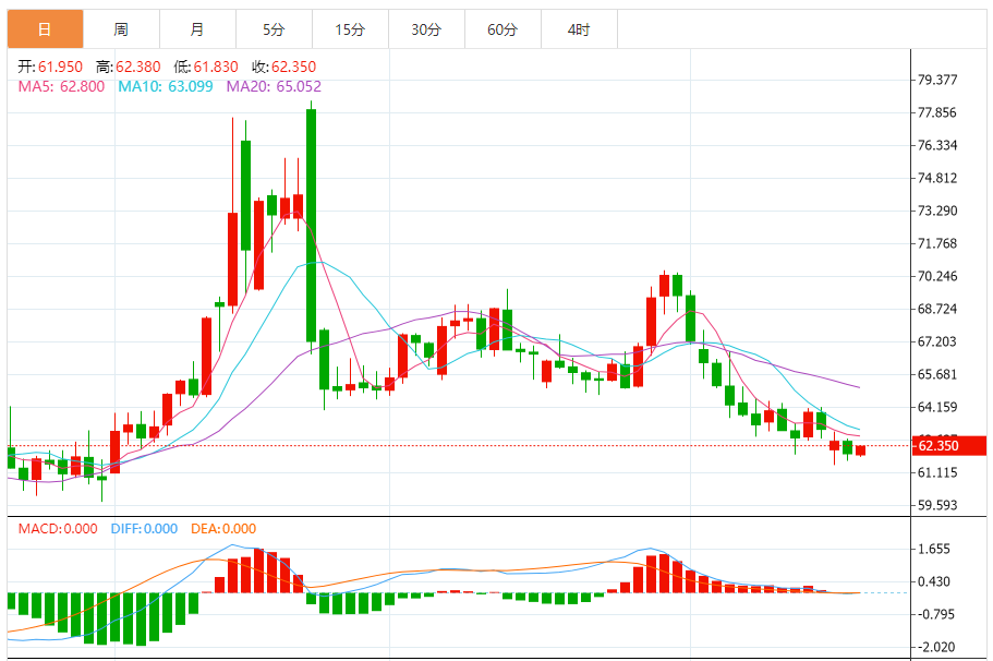 周三(8月20日),美原油价格交投于62.340美元/桶附近,涨幅为0.94%。