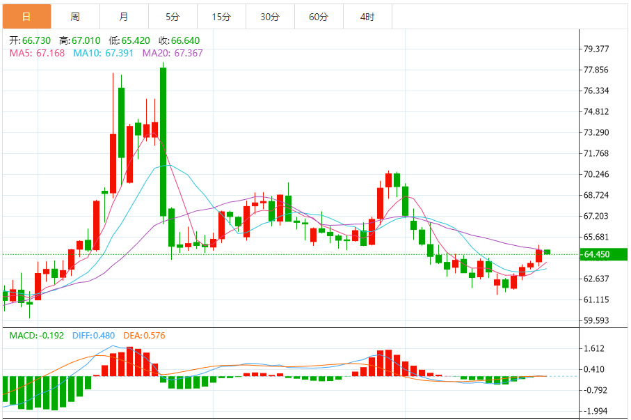 周二,国际油价在经历前一日强劲反弹后小幅下跌。布伦特原油期货下跌0.23%,报每桶68.64美元;WTI原油期货下跌0.54%,报64.46美元。尽管当日出现回调,但此前油价已经触及两周以来的最高水平,且WTI突破了100日均线的重要阻力位。