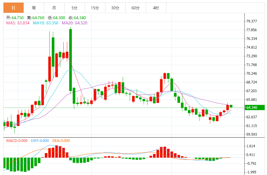 周二(8月26日),美原油价格交投于64.340美元/桶附近,跌幅为0.71%。