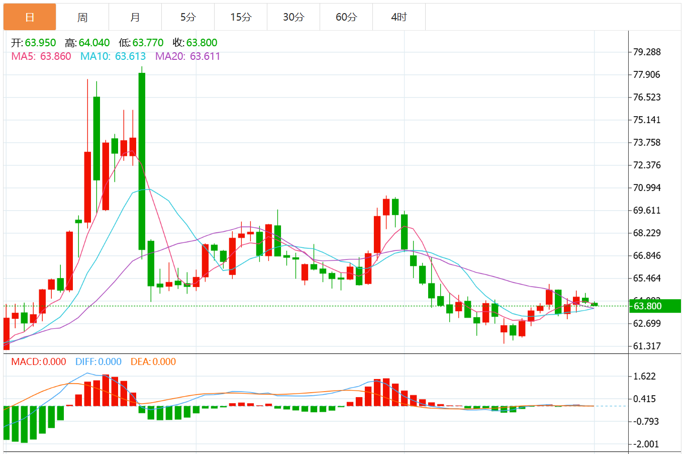 技术层面上来看,短期依然在密集压力区间下方,日内重要支撑63.50美元,如跌破或进一步下探至62.80美元。上方阻力位64.80美元,若突破则有望上测66.00美元。RSI中性偏弱,显示短线空头仍占优势,但库存数据或限制下行空间。