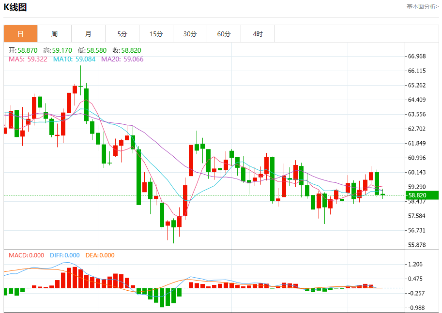 技术面来看,原油正处于明确的中长期下行通道中。WTI原油周线图显示,价格自2023年12月起便处于长期熊市通道内,当前嵌套于2025年6月开启的下跌通道中,56美元/桶成为关键支撑位,若有效跌破将打开向49美元的下行空间。日内15分钟级别上,WTI原油在58.6-58.9美元区间震荡,MACD指标在零轴上方张口向下,多头动能减弱,晚间大概率测试58.6美元支撑有效性。国内原油主连合约则围绕445-450元区间波动,下方444元附近存在阶段性支撑,上方450元则形成明显压力。