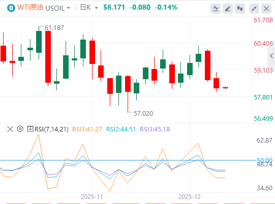 一些分析师正在关注国际能源署(IEA)下一份报告中有关供应的线索。OANDA资深市场分析师Kelvin Wong表示,下一个市场驱动因素可能是国际能源署12月月度石油市场报告,该报告预测2026年石油市场将出现创纪录的过剩,这在之前的展望报告中得到了强调。如果国际能源署在其12月报告中继续标明石油市场存在过剩风险,WTI原油可能会走低,测试每桶56.80美元至57.50美元的区间保护区域。