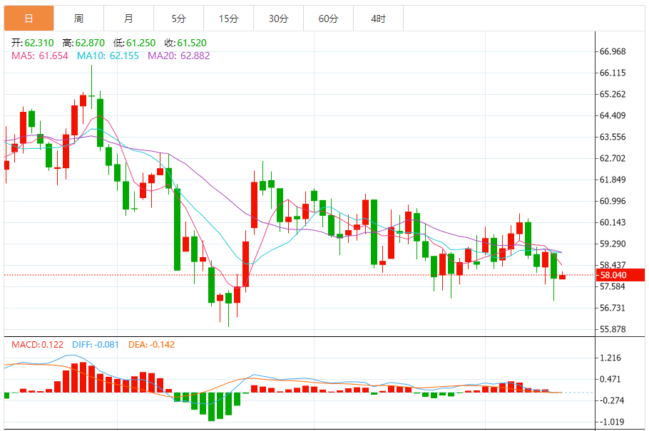 价格目前交易价约为每桶58.03美元,徘徊在自2025年初以来一直持有的55.75美元水平支撑附近。