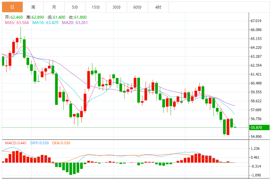 1月WTI原油期货上涨0.4%,结算价为每桶56.15美元;
