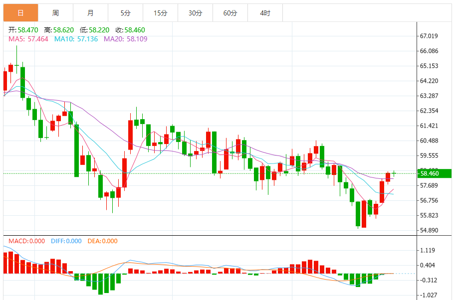 周三(12月24日),美原油价格交投于58.470美元/桶附近,涨幅为0.15%。